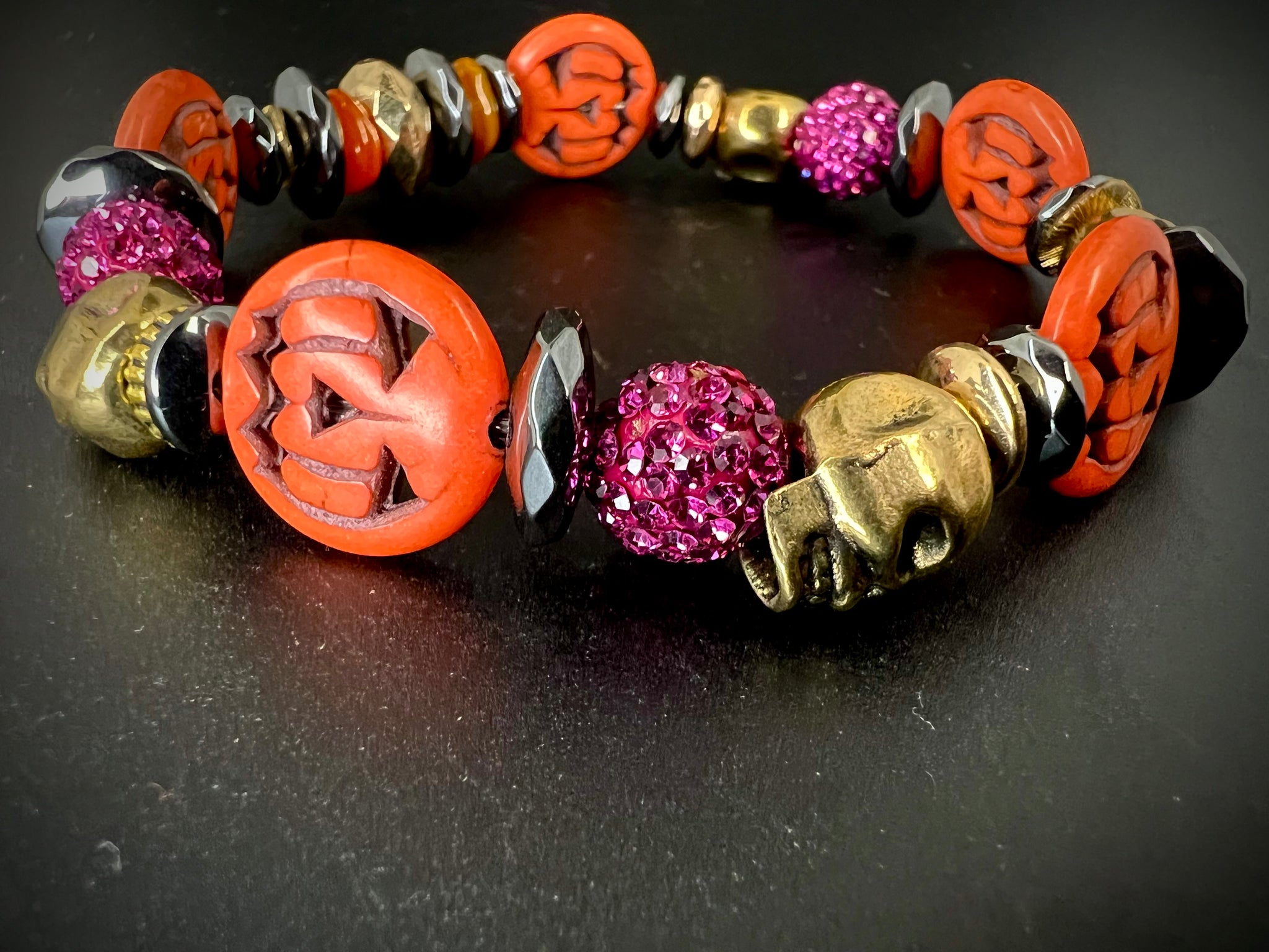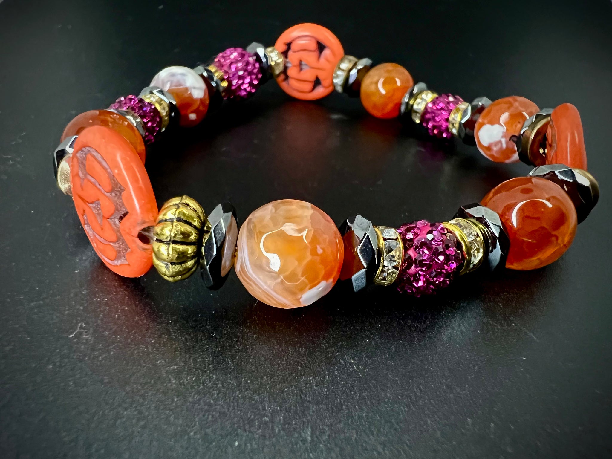Unveil your inner enchantress with Enchanted Midnight, a limited edition Halloween bracelet set that blends luxury and mystique. Handcrafted with rare gemstone beads, shimmering gold accents, and signature pumpkin charms, each bracelet captures the spellbinding beauty of Halloween night. Bold amethyst tones meet fiery orange hues, creating a collector’s dream piece that radiates both glamour and magic. Once this exclusive set disappears into the night, it won’t return — making it the ultimate treasure for those who dare to wear the extraordinary