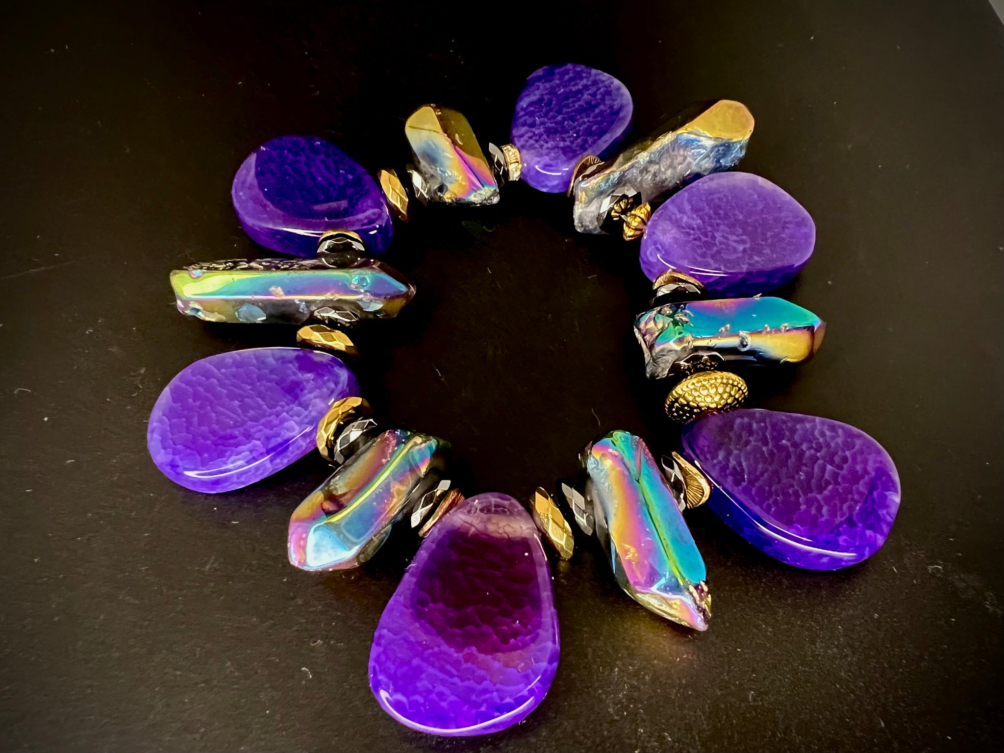 * Materials: Semi precious stones, Hematite, Pave Crystals, Agate, Met, Bone, and 3 Druzy Agate Pendants